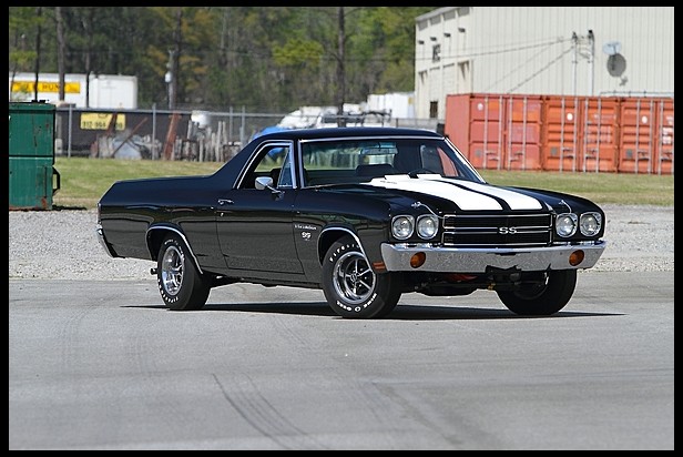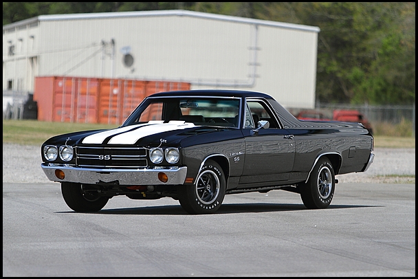 1970 Chevelle SS396 L78 Black Cherry 1970 Chevelle SS454 LS6 Tuxedo Black El Camino Fresh from a Rotisserie Restoration completed in March 2013 to OEM specs. Finished in Original Tuxedo Black with Black Interior Matching Numbers LS6 454/450 HP Solid Lifter Engine Soft Ray Tinted Glass, Muncie Shifter and Pushbutton AM Radio. Cowl Induction, Bucket Seats, Center Console, Power Steering and Brakes, HD Muncie M22 Close Ratio “Rock Crusher?4-speed, 12 Bolt HD Rear Axle Superbly Detailed El Camino with highly valued GM of Canada Documentation. 1964 Chevelle SS ~ Ermine White ~ 327 / 365HP with Turbo 350 1969 Rally Green 427 425HP Nova Original L-78 396-375 HP Car Heavy Duty Front Sway Bar Original Protect-O-Plate Complete Original Owner Verification