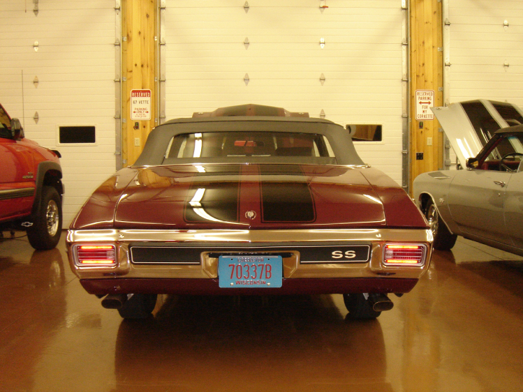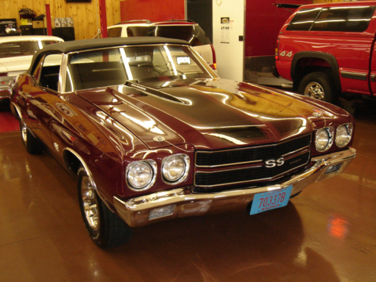 1970 Chevelle SS396 L78 Black Cherry 1970 Chevelle SS454 LS6 Tuxedo Black El Camino Fresh from a Rotisserie Restoration completed in March 2013 to OEM specs. Finished in Original Tuxedo Black with Black Interior Matching Numbers LS6 454/450 HP Solid Lifter Engine Soft Ray Tinted Glass, Muncie Shifter and Pushbutton AM Radio. Cowl Induction, Bucket Seats, Center Console, Power Steering and Brakes, HD Muncie M22 Close Ratio “Rock Crusher?4-speed, 12 Bolt HD Rear Axle Superbly Detailed El Camino with highly valued GM of Canada Documentation. 1964 Chevelle SS ~ Ermine White ~ 327 / 365HP with Turbo 350 1969 Rally Green 427 425HP Nova Original L-78 396-375 HP Car Heavy Duty Front Sway Bar Original Protect-O-Plate Complete Original Owner Verification